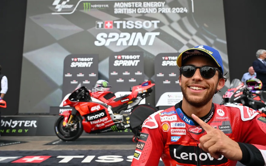 After a dream Saturday, it was a stunning performance on a special Sunday for Enea Bastianini (Ducati Lenovo Team), who capped off a historic weekend at the Monster Energy British Grand Prix as MotoGP™ returned with a vintage twist. The #23 became the 10th different winner at Silverstone in 10 years after showing incredible late pace, charging into the podium places before crossing the line to win. Meanwhile, it was yet another turn in the Championship standings, with Jorge Martin (Prima Pramac Racing) taking the title lead after a strong second place finish on Sunday. The #89 led the majority of the Grand Prix before Bastianini unlocked his full potential.