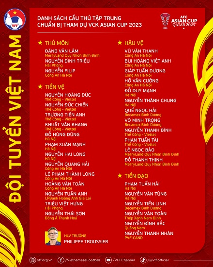 Vietnam head coach Philippe Troussier has called up 34 players in preparation for next month’s AFC Asian Cup 2023 in Qatar.