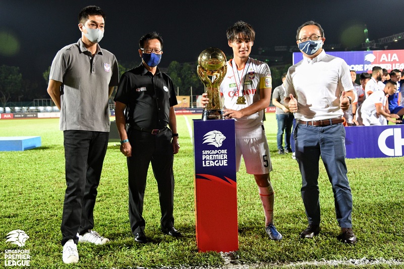 Albirex captain Hashioka hoisted the SPL trophy aloft at Hougang Stadium in a socially-distanced presentation ceremony, where the champions received SGD150,000 in prize money, with FA of Singapore (FAS) President, Lim Kia Tong in attendance, along with AIA Singaporeâs Chief Corporate Solutions Officer, Alvin Fu.