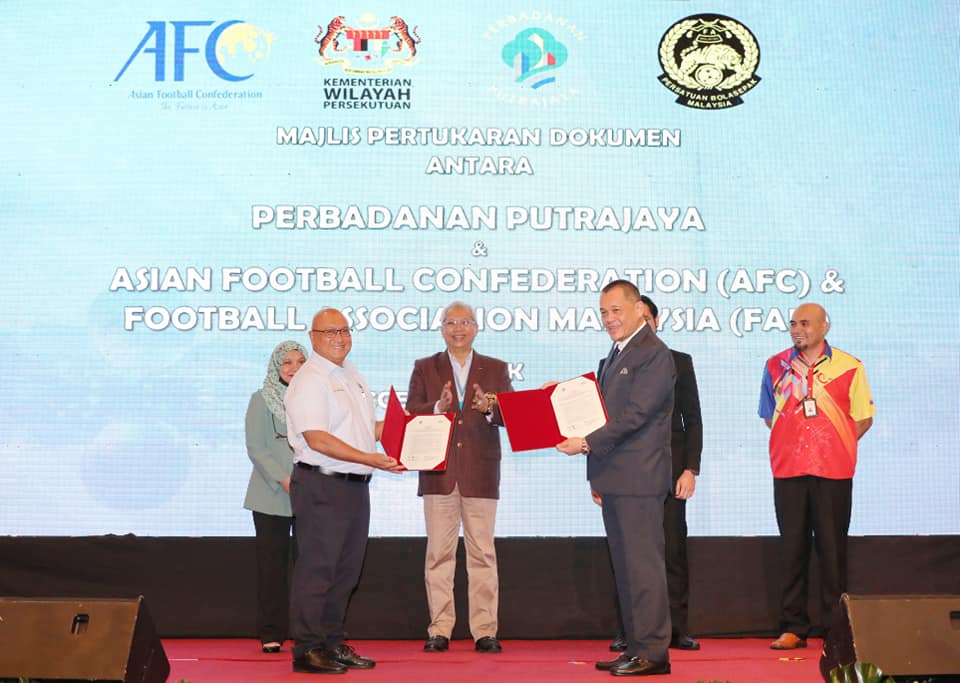 Terdahulu, Annuar dan Timbalan Menteri Belia dan Sukan Wan Ahmad Fayhsal Wan Ahmad Kamal, menyaksikan Presiden Perbadanan Putrajaya (PPj) Datuk Dr Aminuddin Hassim, bertukar dokumen dengan Presiden FAM Datuk Hamidin Mohd Amin, dan Setiausaha Agung AFC Datuk Windsor Paul John.