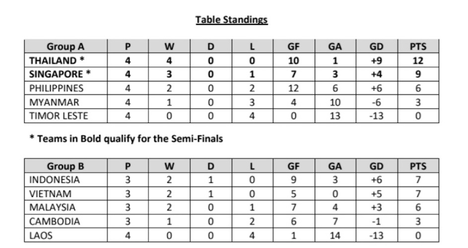 Two first-half goals gave Thailand not only a 2-0 win over host Singapore but also their win of Group A after the completion of the group matches of the AFF Suzuki Cup 2020 this evening at the National Stadium.