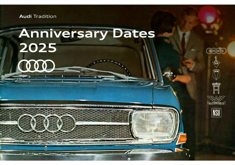 The “Anniversary Dates 2025” booklet contains several additional anniversaries to discover, including 25 years of the first Audi victory at Le Mans and 25 years of Audi allroad quattro, 35 years of Audi duo hybrid vehicles, 40 years of fully galvanized bodies in large-scale automotive engineering, 50 years of the Audi 80 GTE, 55 years of the Audi 100 Coupé S, 60 years of the NSU Prinz 1000 TT and NSU Type 110, 75 years of the first post-war DKW passenger car, and 90 years of the Horch 850 series.