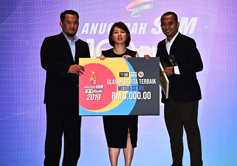 Other than giving recognition to athletes for their outstanding success throughout 2019, sports journalists also gained recognition with a total cash prize of more than RM50,000 at the SAM-100PLUS Awards ceremony.