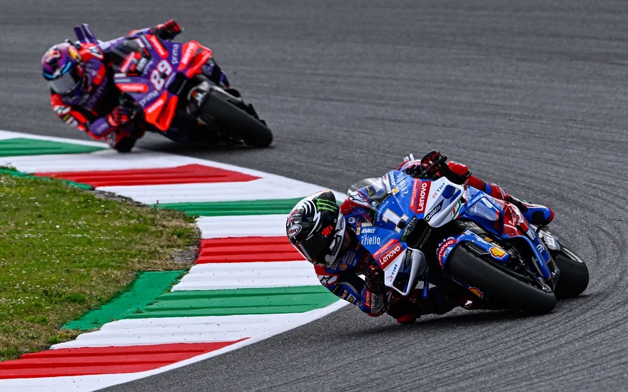 After a brilliant performance on Saturday, Francesco Bagnaia (Ducati Lenovo Team) stormed to a triumphant victory at Mugello – completing a perfect weekend. The #1 took the maximum points available at every opportunity this weekend – adding 37 points to his tally. Straight off the line, Bagnaia charged from fifth to first by turn two, while Jorge Martin (Prima Pramac Racing) spent the race trying to match Bagnaia’s brilliant pace before an epic last lap move from Enea Bastianini (Ducati Lenovo Team) demoted the Spaniard to third.