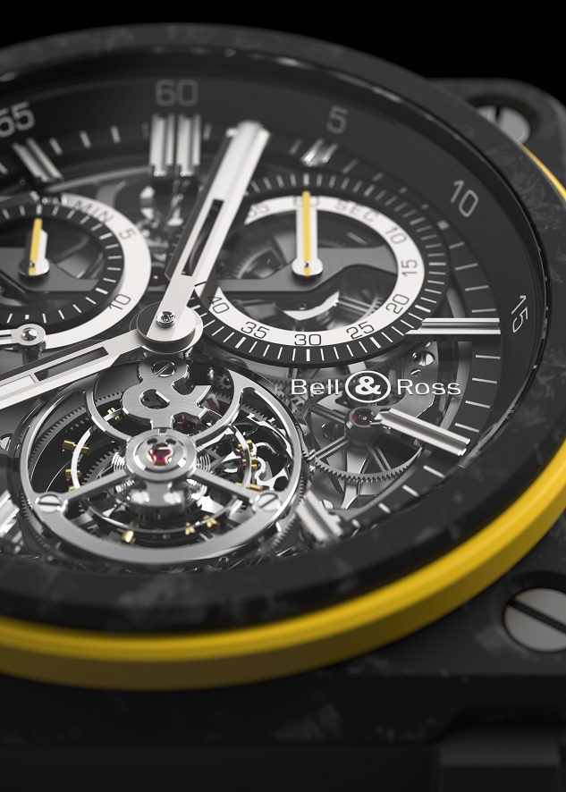 Embodying the very essence of the «automotive watch», the BR-X1 RS16 Skeleton Chronograph, a high-tech chronograph with a sporty yet sophisticated design, is devoted to measuring short time intervals. Its innovative rocker push buttons, used to activate the chronograph functions, are made from high-tech ceramic with ergonomically designed yellow rubber inserts.