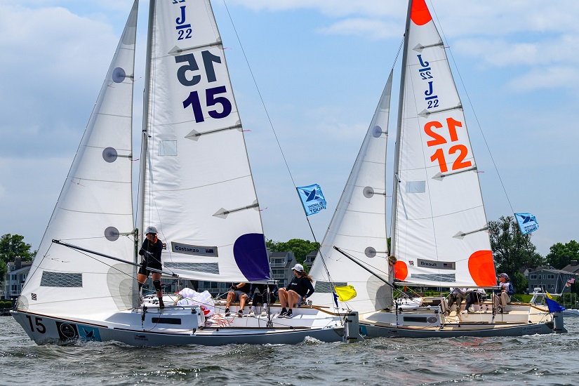 In the first of the semi-final matches, four-time US women’s match racing champion Nicole Breault and team from the St. Francis Yacht Club in San Francisco demonstrated their tactical experience in the J22 yachts to overcome Australia’s Juliet Costanzo and her Easy Tiger Racing with three straight wins in the first-to-three points match.