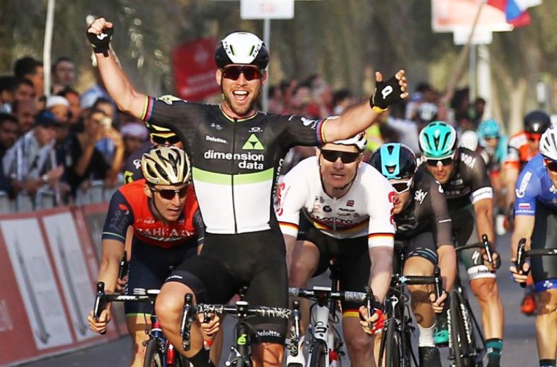 Britain’s Mark Cavendish won a sprint finish for the first stage of the Tour of Abu Dhabi on Thursday as race favourite Marcel Kittel of Germany crashed.