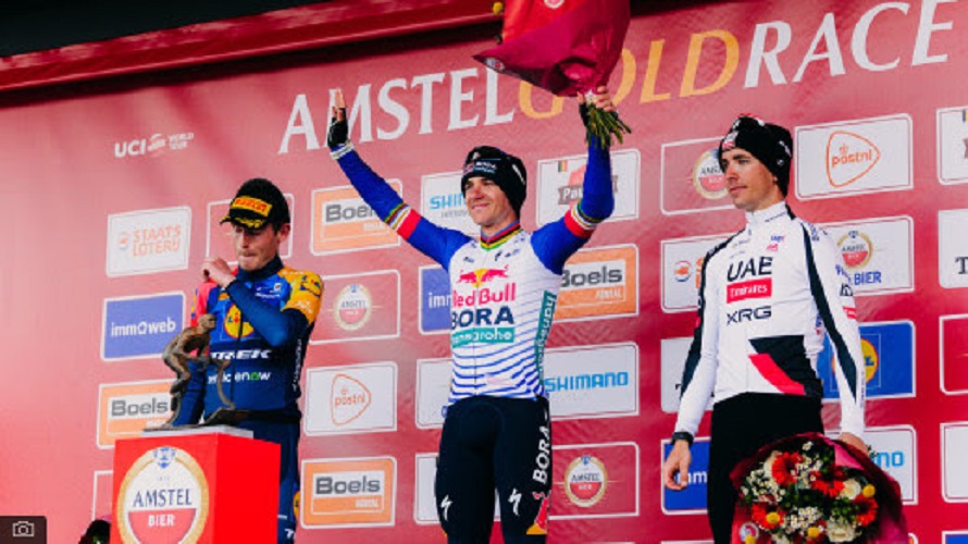 Red Bull – BORA – Hansgrohe team leader Remco Evenepoel delivered a perfectly timed ride to claim his first victory in the Amstel Gold Race cycling classic on Sunday, out-sprinting defending champion Mattias Skjelmose from a two-man breakaway in Valkeburg, Netherlands. Here is all you need to know: