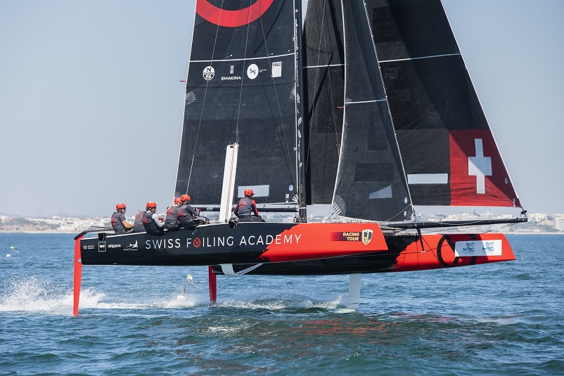 Great things are expected of Nicolai Sehested’s Danish crew on board Team Rockwool Racing this week, but on the steepest learning curve are the other newcomers to fleet – Swiss Foiling Academy. Led by mainsheet trimmer Julien Monnier and helmsman Loick Forestier, the Swiss Foiling Academy is a worthy initiative that trains up young Swiss sailors in the sport’s newest discipline. “It was a good improvement for us,” says Monnier of their first GC32 Racing Tour event a month ago. “We learned a great deal and our learning curve is very high. We want to continue this progression.”