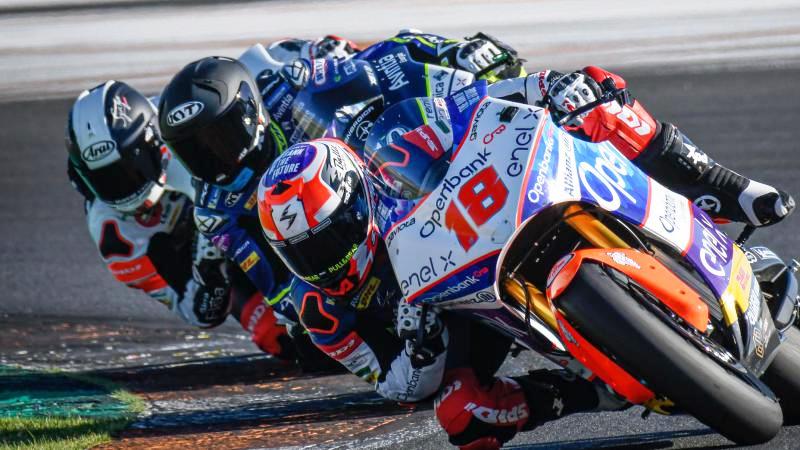 Nico Terol (Openbank Angel Nieto Team) came fourth in that first race and was a key mover up from where he’d qualified, just beating Matteo Ferrari (Trentino Gresini MotoE), with the likes of Xavier Simeon (Avintia Esponsorama), Mattia Casadei (SIC58 Squadra Corse) and Mike di Meglio (EG 0,0 Marc VDS) in a close fight behind. Alex De Angelis (Octo Pramac MotoE) and Niccolo Canepa (LCR E-Team) were next up and just got the better of Jesko Raffin (Dynavolt Intact GP), with Maria Herrera (Openbank Angel Nieto Team) in P11 and looking for more after losing out slightly over race distance compared to her qualifying.