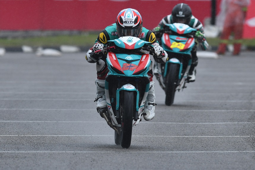 Beraksi di dalam cuaca hujan tidak menghalang pelumba PETRONAS Sprinta Yamaha Maju Motor itu untuk mencatat masa terpantas dengan catatan 54.958s pada pusingan ke-10 mengatasi catatan milik rakan sepasukan, Mohd Ramdan Mohd Rosli yang terlebih dahulu mencatat masa terbaik 55.009s pada pusingan kelapan.