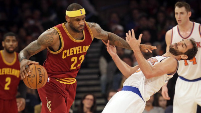 LeBron James scored 32 points and handed out 10 assists to lead the reigning champion Cleveland Cavaliers to a 111-104 victory over the New York Knicks at Madison Square Garden.