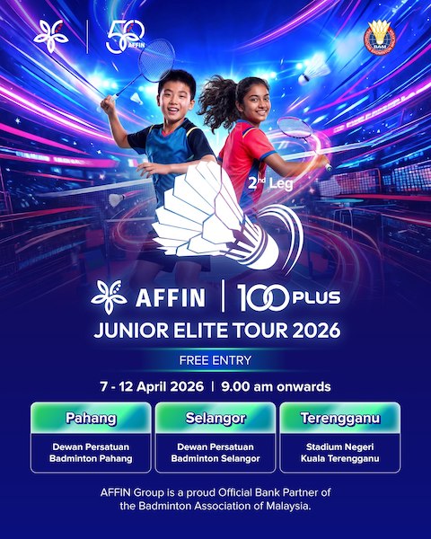 Top seed Kohgulraraj Ravichandran stormed into the quarterfinals of the Boys’ Under-16 Singles second leg, Group A of the AFFIN-100PLUS Junior Elite Tour (JET) 2026 after putting up a confident performance here in Kuantan, Pahang.
