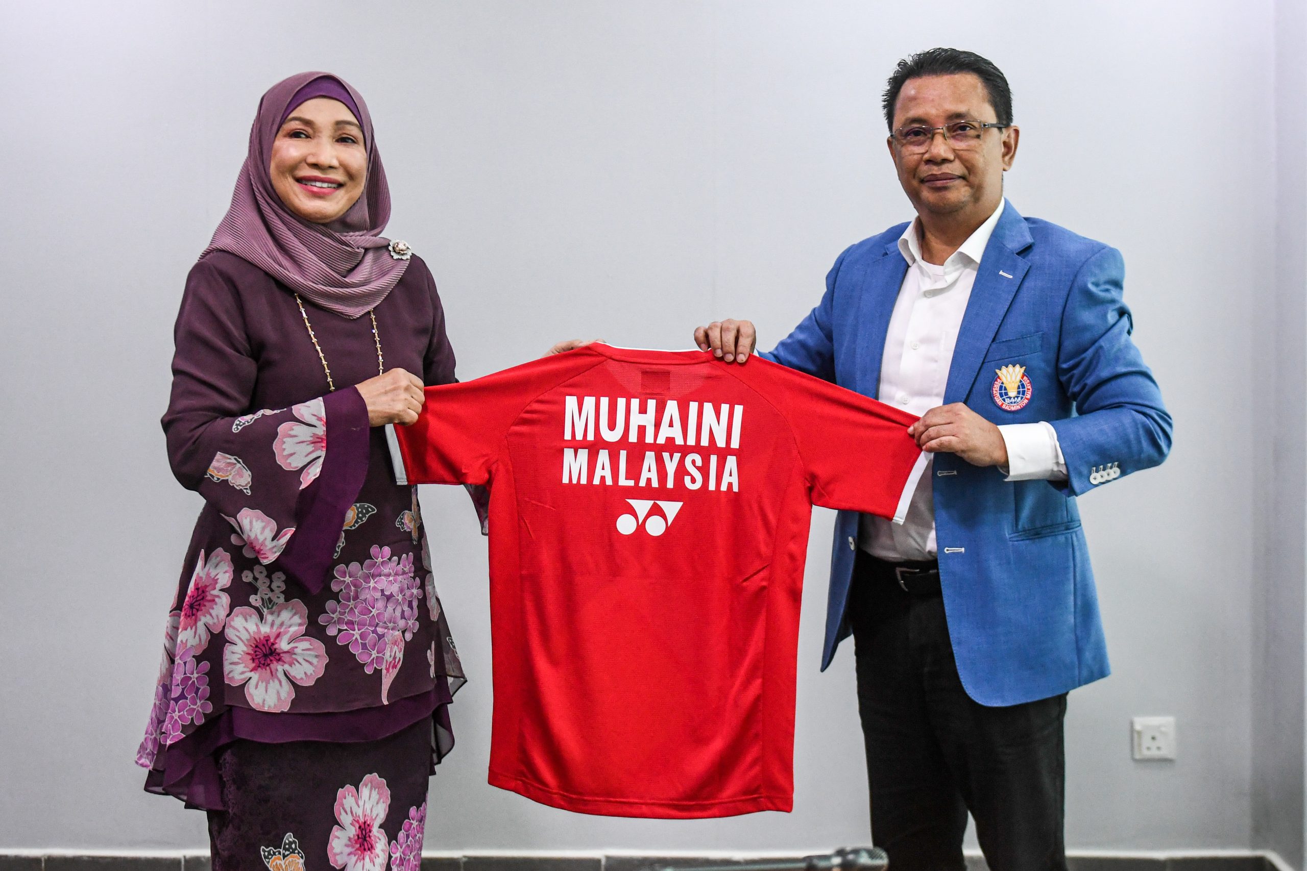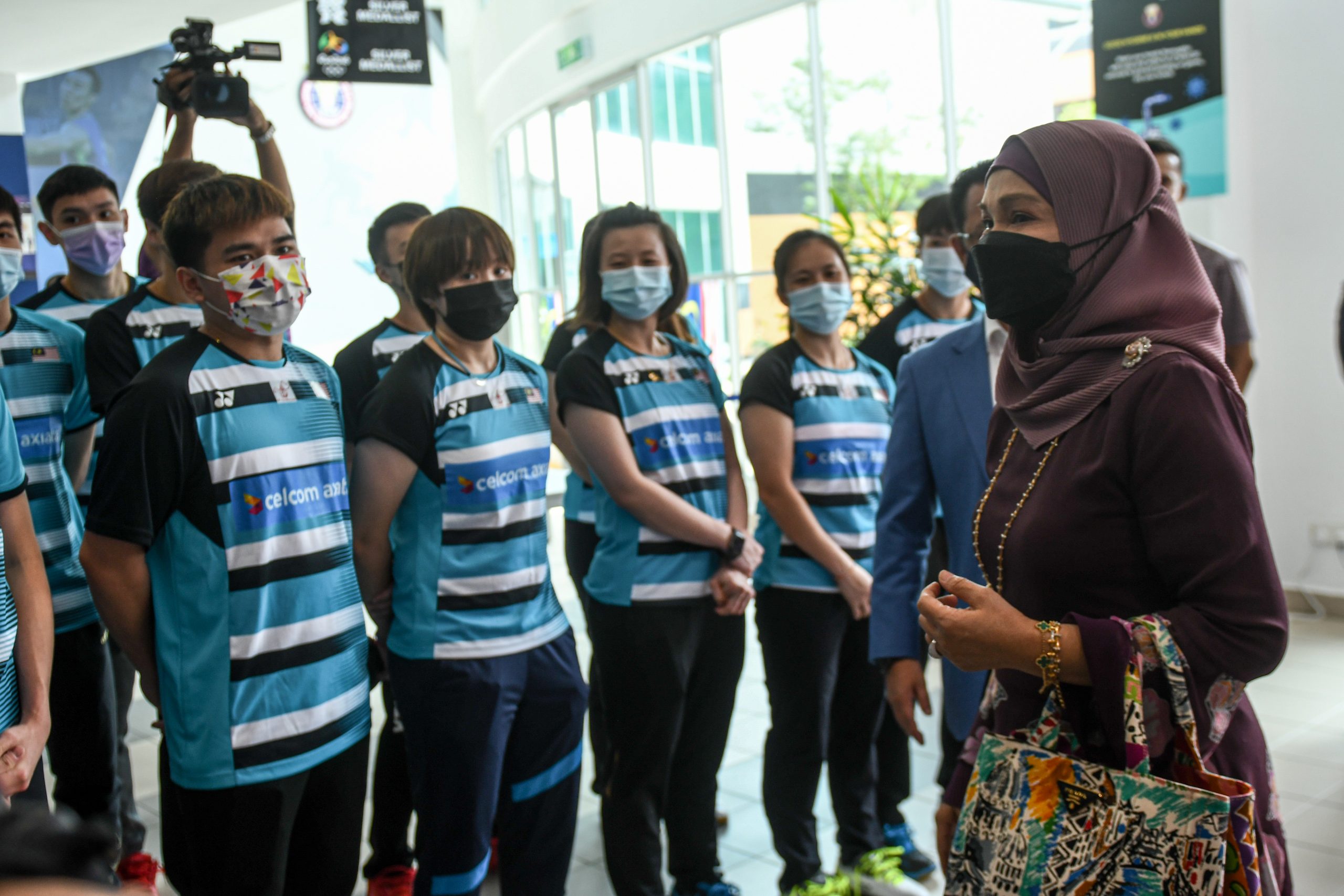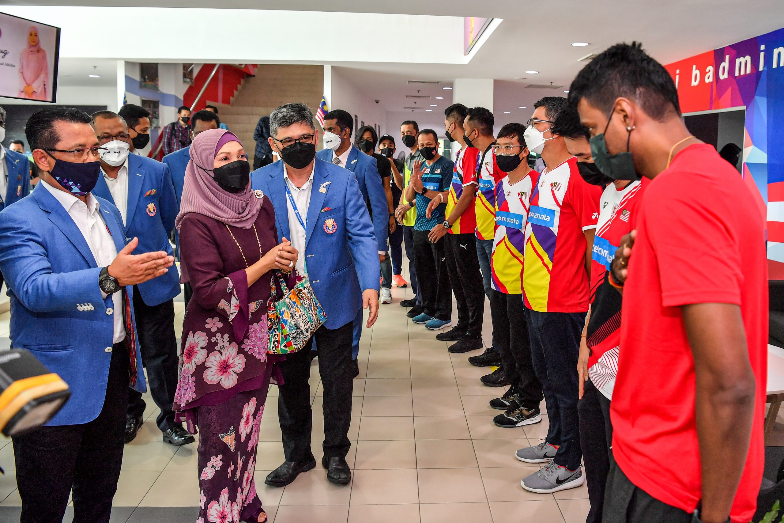 Warga Persatuan Badminton Malaysia (BAM) menerima kunjungan hormat Penaung, Datin Sri Muhaini Zainal Abidin ke pusat kecemerlangan badminton Negara, Akademi Badminton Malaysia (ABM), hari ini.