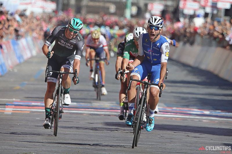Gaviria, a sprint specialist competing on his maiden three-week stage race, powered his way to a first Grand Tour victory on the third stage from Tortolo to Cagliari, Sardinia.