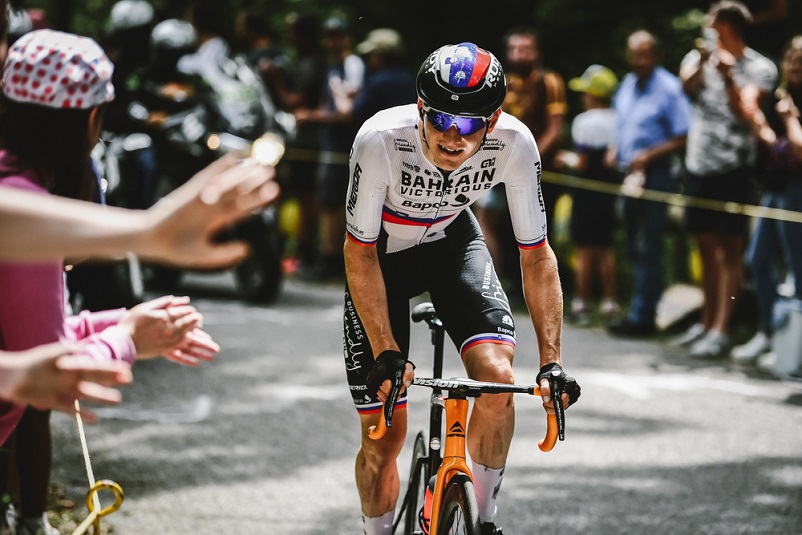 Pada Peringkat Ketujuh yang mencabar, Matej Mohoric dari Slovenia memisahkan diri dari peloton di pendakian terakhir untuk memenangi laluan beralun sejauh 249.1km.