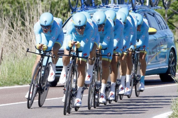 Astana beat Team Sky, whose Spanish rider Mikel Landa is one of the favourites for overall victory, by 14sec on the 12.1km time-trial overlooking Lake Garda.