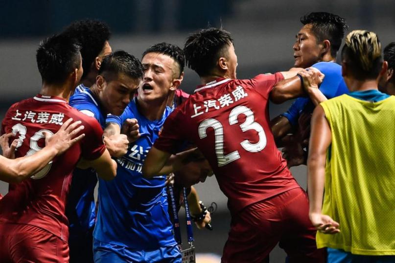 The fight erupted just before half-time in Sunday’s CSL clash at Guangzhou R&F, where Andre Villas-Boas’s SIPG were attempting to keep up the pressure on league leaders Guangzhou Evergrande.