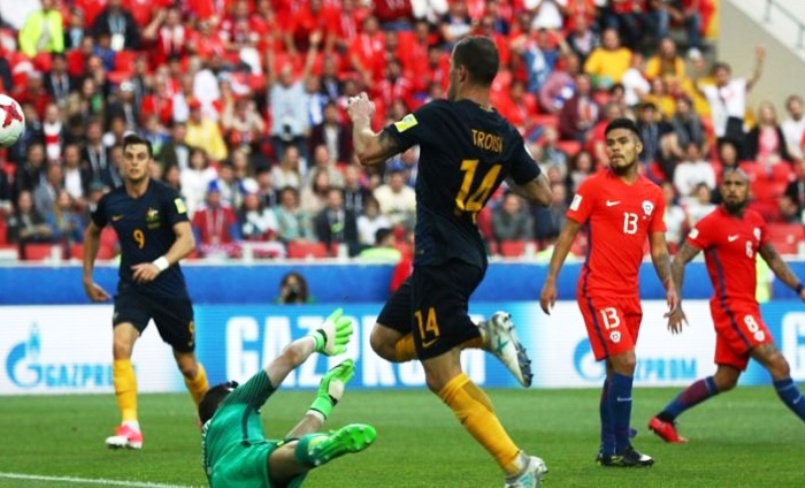 Knowing that only a win by two goals or more would secure their passage through the semi-finals, Australia went ahead on 42 minutes at the Spartak Stadium in Moscow when Robbie Kruse gained possession before delivering a cross that James Troisi expertly lofted over Chile goalkeeper Claudio Bravo.