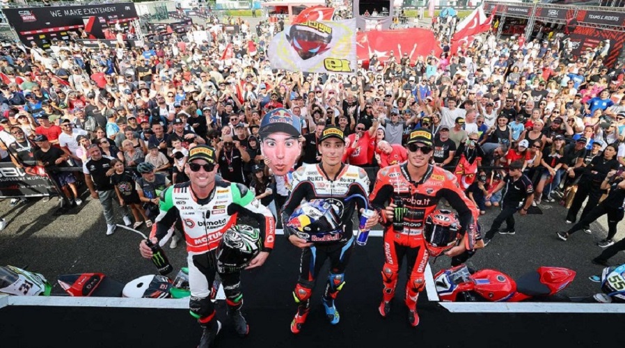 - Razgatlioglu made the most of pole, sprinting into an early lead. With the harder front tyre the Turkish rider was patient in the opening laps before setting the fastest lap of the race on Lap 4 when he broke away from Nicolo Bulega (Aruba.it Racing – Ducati). The battle for the final step on the podium was a race long scrap. Alex Lowes (bimota by Kawasaki Racing Team) dropped to fifth position at one point. A mid-race scrap with Jonathan Rea (Pata Maxus Yamaha) saw the six times World Champion briefly run in third position before Lowes asserted himself and opened a margin to his pursuers of over two seconds in the closing laps.  Coming from the fifth row of the grid Alvaro Bautista (Aruba.it Racing – Ducati) enjoyed a combative race to finish in fourth position. His scrap with Michael van der Mark (ROKiT BMW Motorrad WorldSBK Team) and Rea for the closing laps was exciting and after a tough weekend Bautista had a comfortable margin at the flag of 2.4s. Starting from the back of the grid after a Superpole crash Andrea Locatelli (Pata Maxus Yamaha) finished in ninth position. The Italian finished the race half a second behind Danilo Petrucci (Barni Spark Racing Team) who struggled in the closing stages having fought for the podium in the early laps.