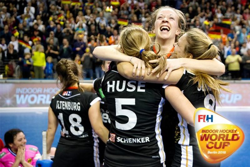 Berlin, Germany: Anne Schröder scored the winning goal as Germany overturned a 1-0 deficit against the Netherlands to win the 5th Women’s Indoor Hockey World Cup 2018 in front of an sell-out, 8000-strong crowd at the Max-Schmeling-Halle.