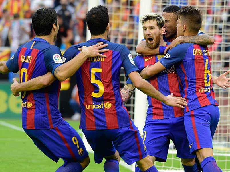 Lionel Messi, Luis Suarez and Neymar were all on target as Barcelona shrugged off the loss of the injured Sergio Busquets to remain just...