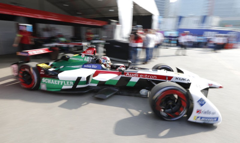 DTM star Nico MĂĽller and youngster Nyck de Vries in Audi e-tron FE04