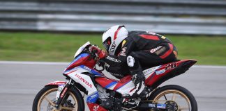 Azroy Hakeem Anuar yang kini bersaing hebat mempertahankan kedudukannya di tangga teratas kategori perdana CP150 mempamerkan kapasiti sebenar jentera pasukan Idemitsu Honda Yuzy Racing...