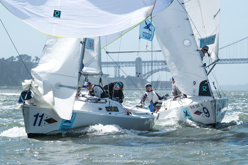 French match racing skipper Pauline Courtois and her Match in Pink Normandy team claimed a decisive victory today at the 2025 Casa Vela Cup, held in the iconic waters of San Francisco Bay and hosted by the St.Francis Yacht Club. Courtois and crew defeated USA’s Nicole Breault and the Vela Racing team 3-1 in the final. Sweden’s Team Wings skippered by Anna Östling finished in third after winning both races in the first-to-two points petit-final against Julia Aartsen/ Team Out of the Box from the Netherlands.