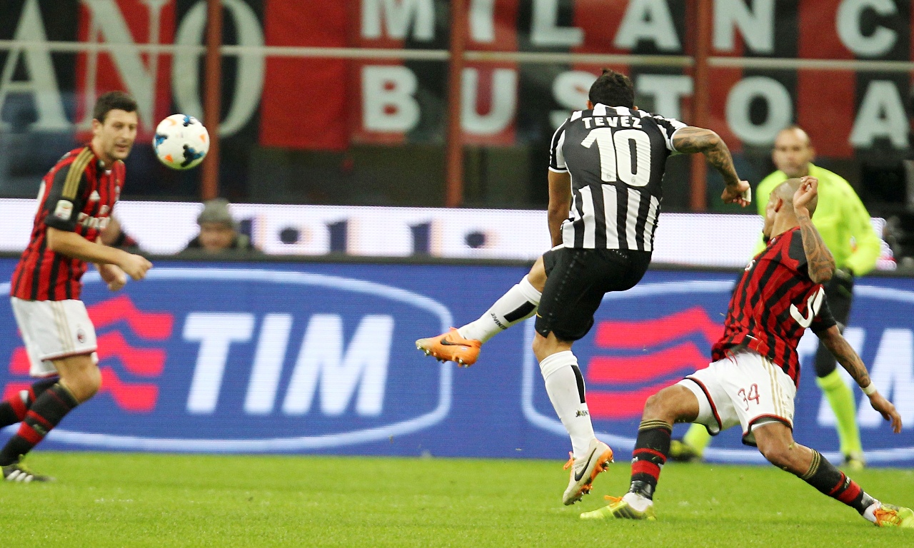 Carlos Tevez scored his fourth goal in a week to hand champions Juventus a precious 1-0 win over Milan, and new coach Massimiliano Allegri the bragging rights, at a packed-out San Siro on Saturday.