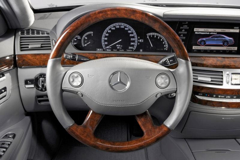 9 – Padding: Mercedes-Benz is a pioneer in passive safety. As part of the safety concept implemented in 1959 in the W 111 model series, the “tail fin” saloon was the first to feature a steering wheel with a large, padded impact cushion, which reduced the risk of injury. In 1967, Mercedes-Benz introduced safety steering with a telescopic steering column and impact absorber as standard equipment for all vehicles. Then, in 1981, the driver’s airbag fitted in the steering wheel was introduced. This world-first innovation in production cars was introduced by Mercedes-Benz in the S-Class model series 126.