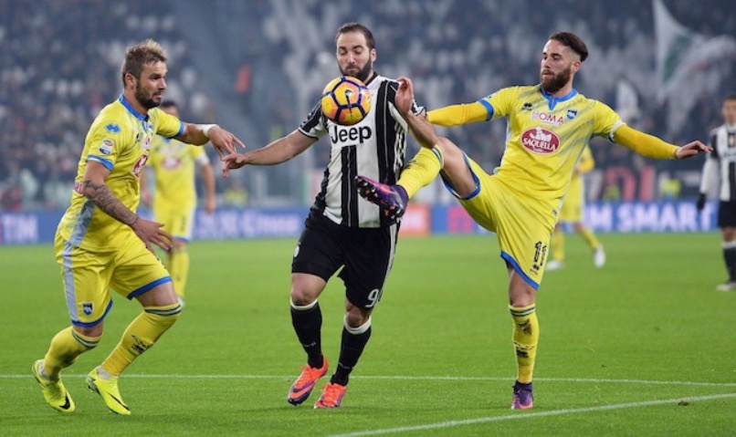 Juventus were cruising to a comfortable win against the league newcomers in Turin after goals from Sami Khedira, Mandzukic and Hernanes wrapped up a fourth consecutive league win to move them seven points ahead of Roma before the remaining weekend fixtures.