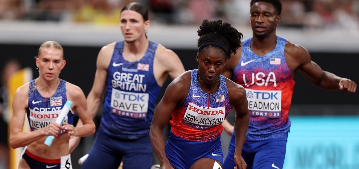 USA successfully defended the mixed 4x400m title and equalled their championship record from two years ago, clocking 3:08.80.
