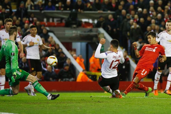Daniel Sturridge, with a penalty, and Roberto Firmino scored as Liverpool claimed a deserved win on Thursday, and the hosts might have put the last 16 tie to bed had it not been for United goalkeeper David de Gea.